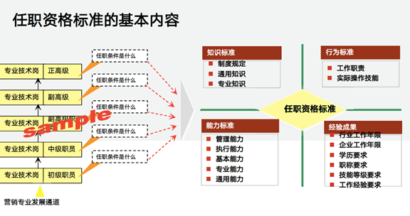 每個(gè)類別都有一個(gè)職業(yè)發(fā)展通道、每個(gè)級(jí)別都有相應(yīng)的評(píng)價(jià)標(biāo)準(zhǔn),通過標(biāo)準(zhǔn)不斷地牽引員工提升,就構(gòu)建了基于能力的人力資源管理基礎(chǔ)。