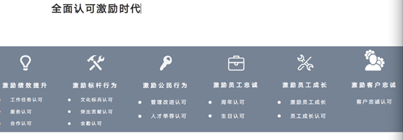 1.全面認(rèn)可激勵(lì)?;诮M織與人關(guān)系的轉(zhuǎn)變和新生代員工的特點(diǎn),我們發(fā)現(xiàn),單純的薪酬激勵(lì)作用越來越低,企業(yè)必須進(jìn)入到全面認(rèn)可激勵(lì)時(shí)代。全面認(rèn)可激勵(lì)的范圍至少包括六個(gè)方面:激勵(lì)績(jī)效提升、激勵(lì)標(biāo)桿行為、激勵(lì)組織公民行為、激勵(lì)員工忠誠(chéng)、激勵(lì)員工成長(zhǎng)、激勵(lì)客戶忠誠(chéng)。方式方法則有很多,目前比較熱門的是如積分制、自助福利等。